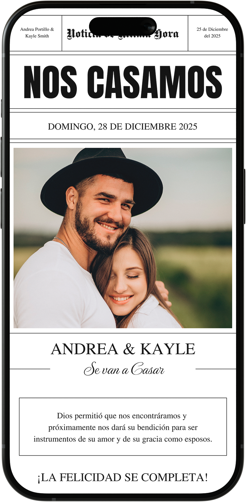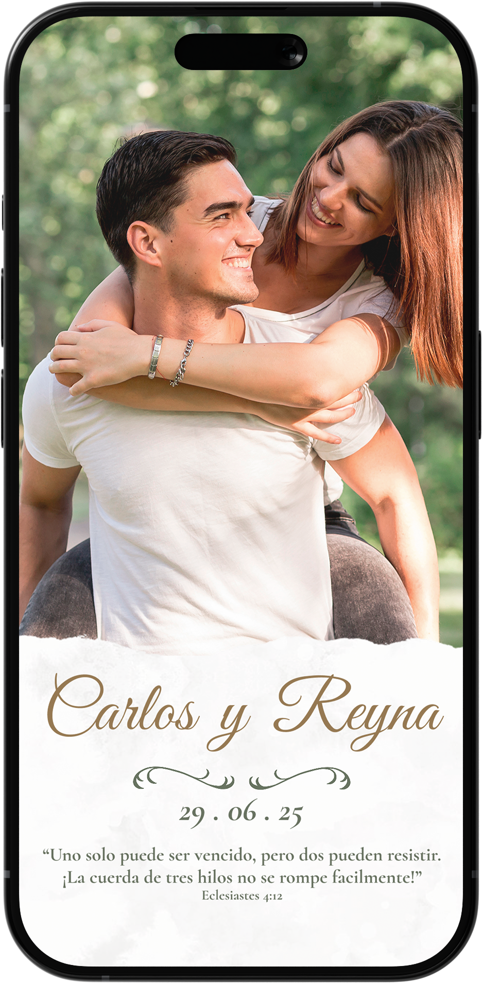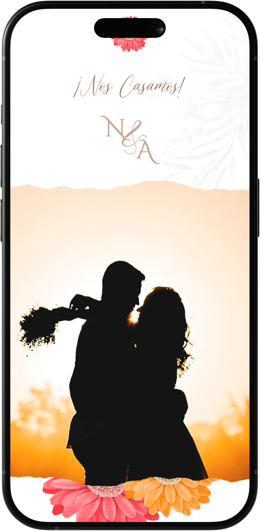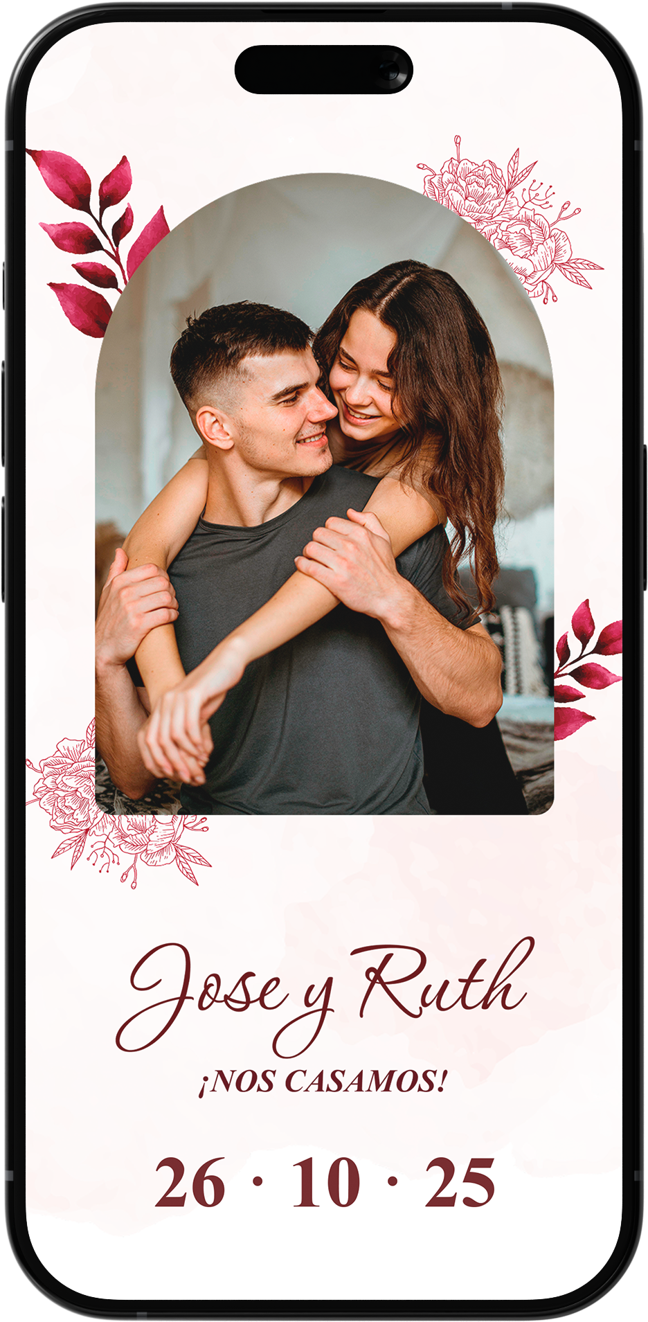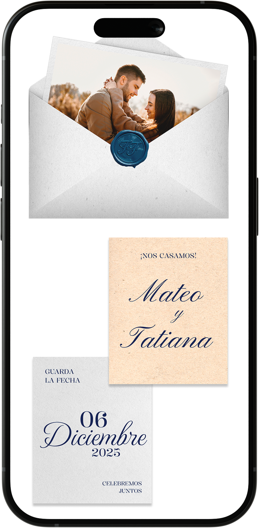 En el paquete ZAFIRO, el diseño base se mantiene, pero puedes cambiar textos, fotos y el color de la invitación